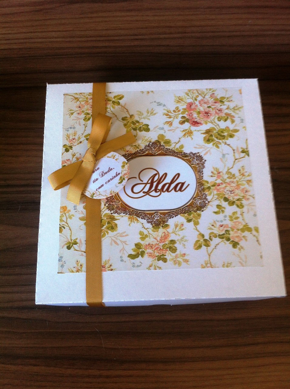 - 1 caixa branca 20x20cm com adesivo personalizado